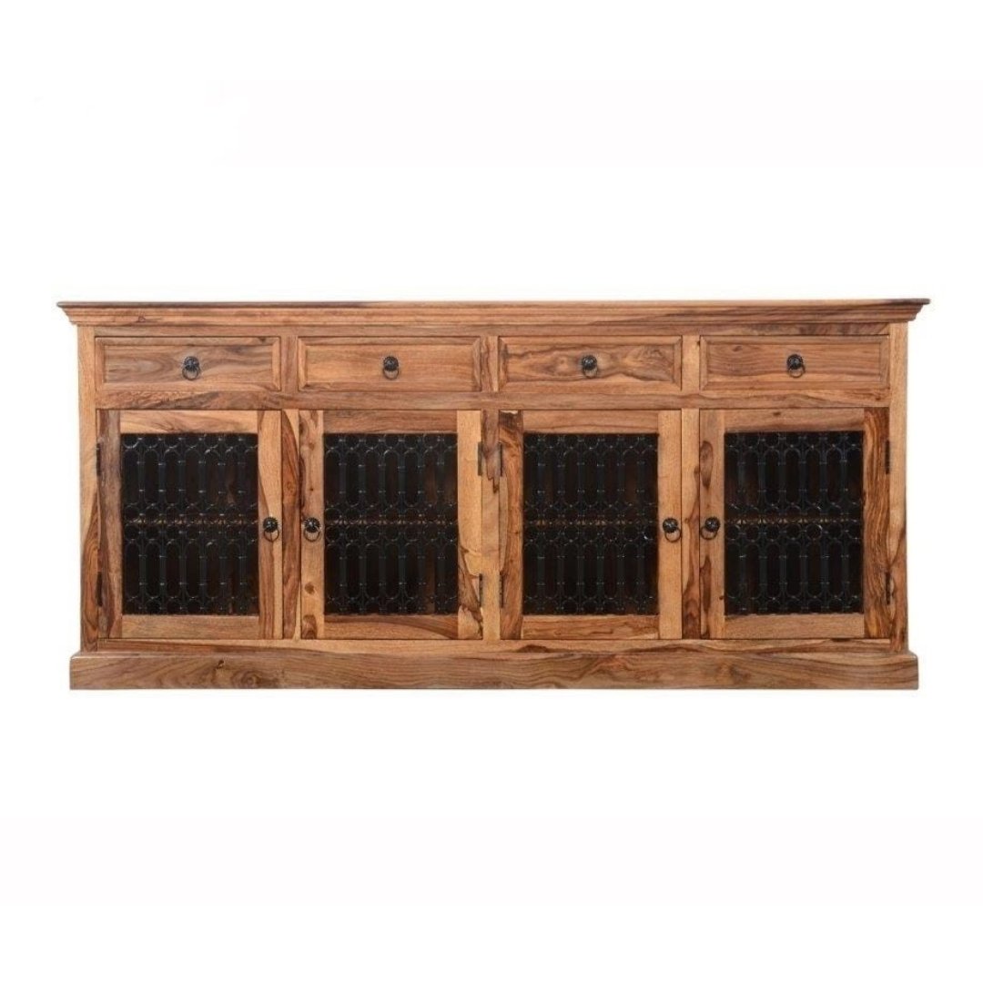 Home Bedroom Classic Evergreen Teak Wood Natural Large Jali Sideboard With 4 Doors & 4 Drawers