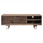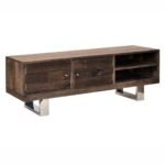Modern Bonnat Solid Wood Brown TV Unit With 2 Doors & 2 Shelf