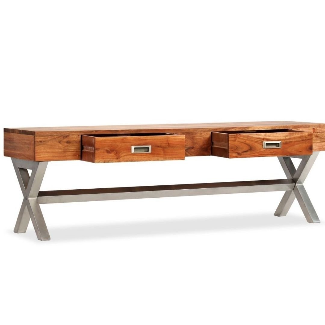 Modern Bonnat Indian Solid Wood Natural TV Unit With 2 Drawers and 1 Shelf