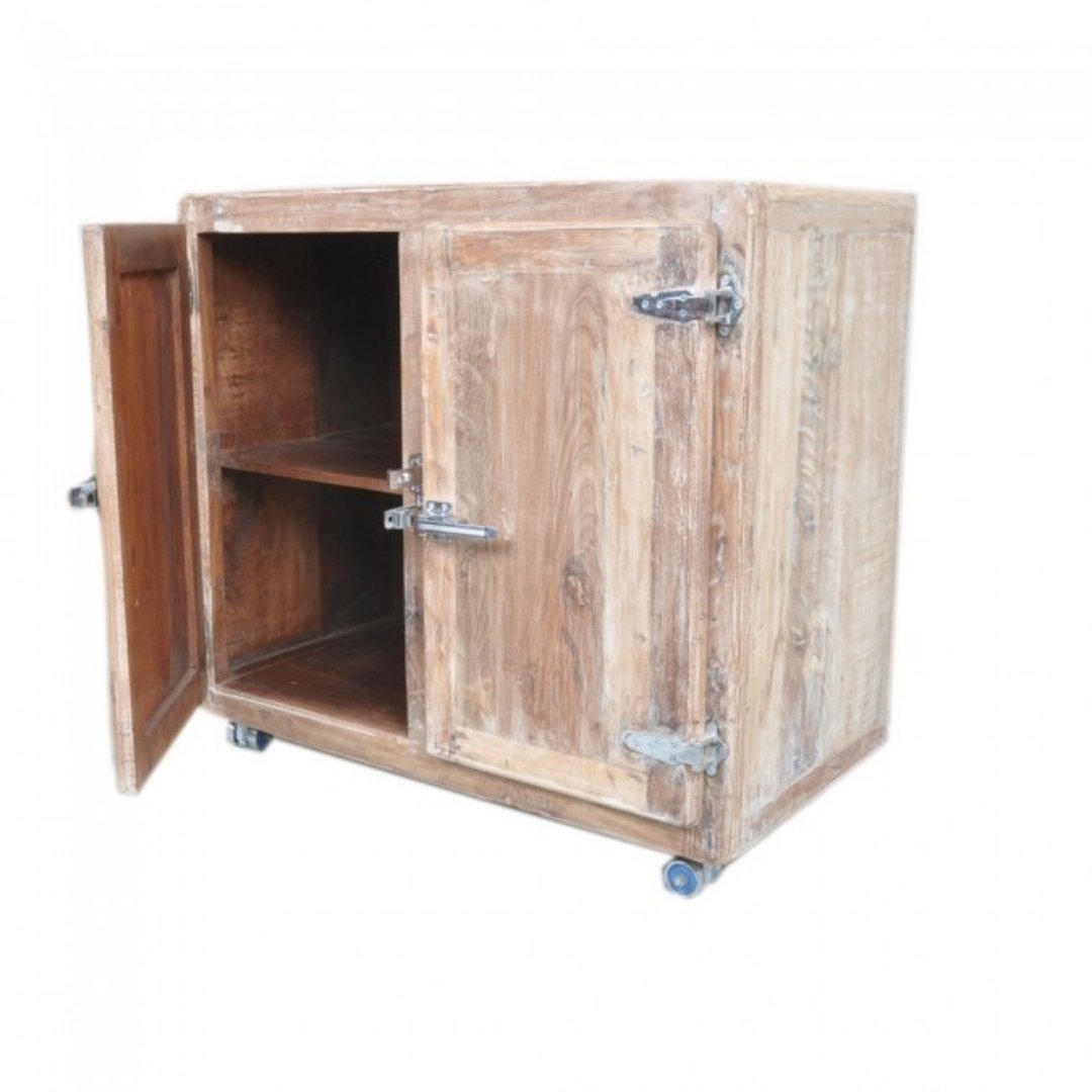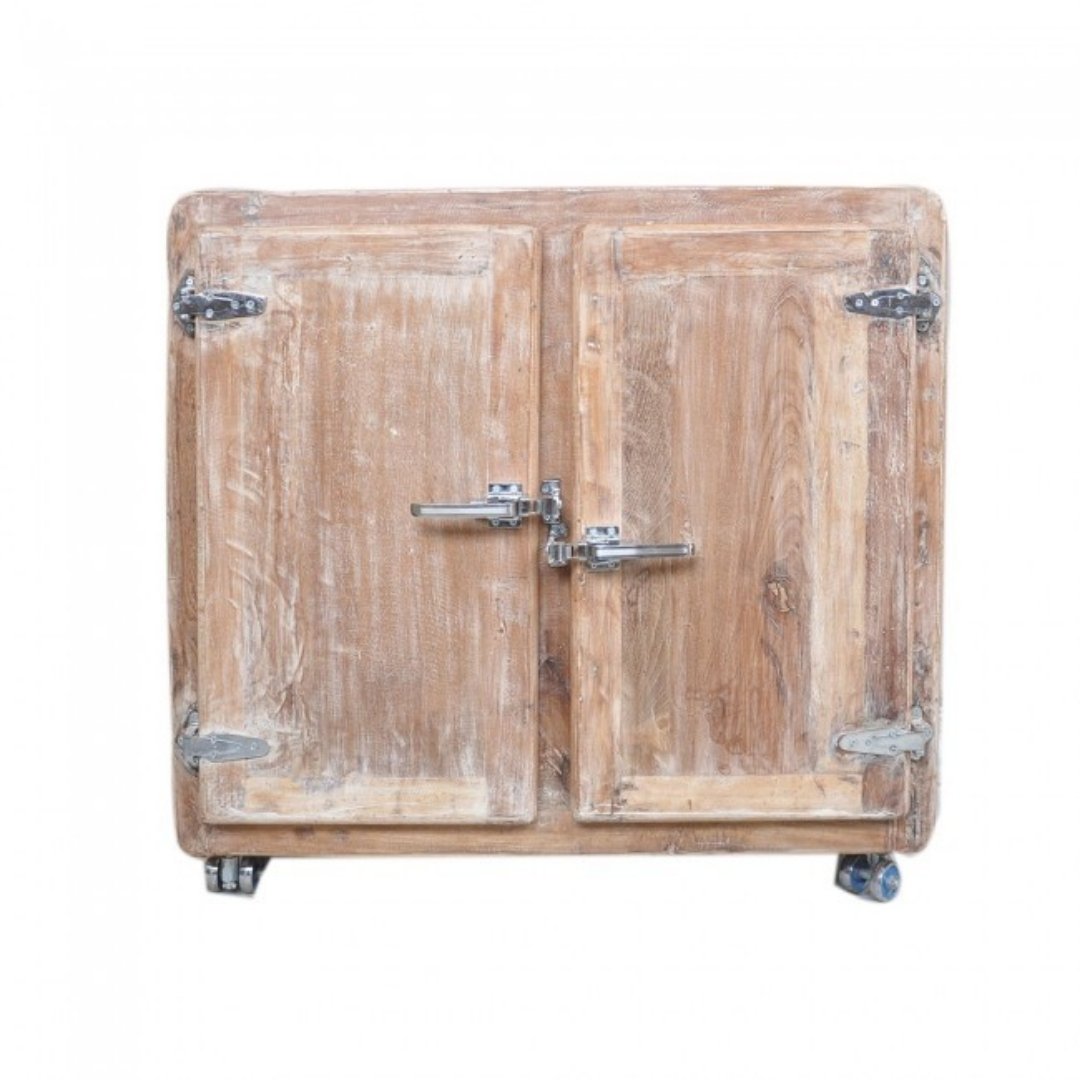 Modern Chrome Solid Wood Whitewash Sideboard With 2 Door On Wheels